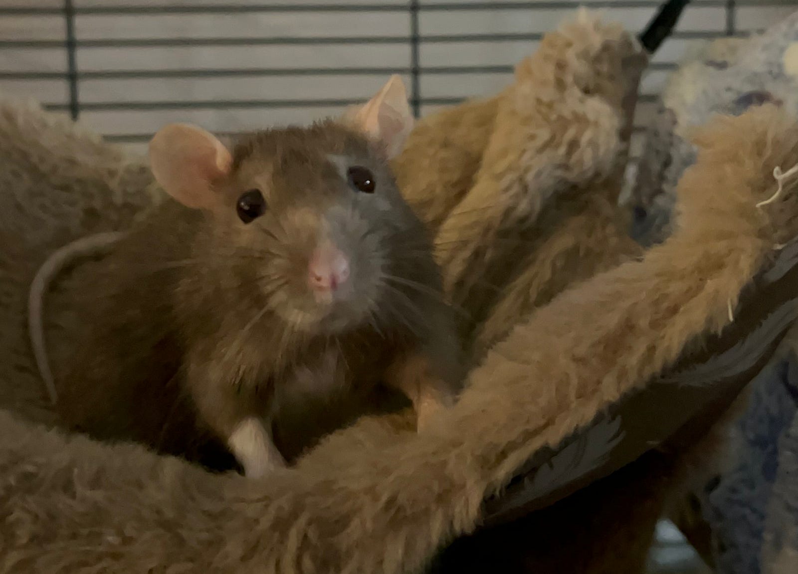 And now, I shall reward you with a photo of my rat Katie, who looks like she’s looking for a treat. 😁